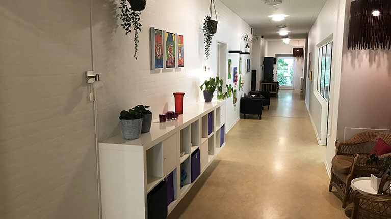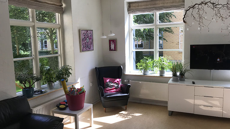Bøgedal er opdelt i to levegrupper med otte lejligheder i hver, og hver levegruppe har eget køkkenalrum og fælles opholdsstue.